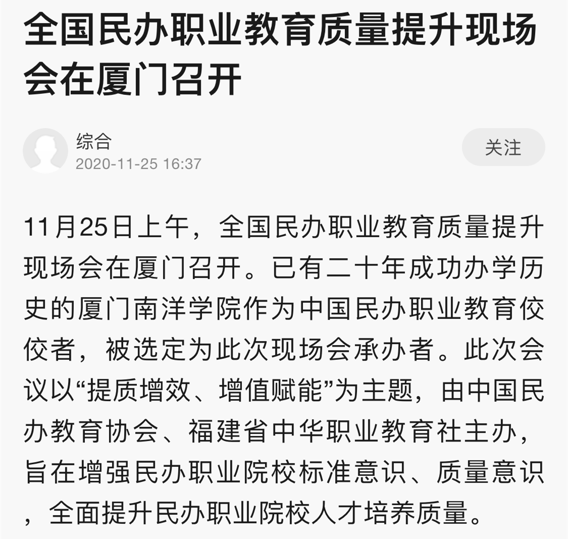 新浪网:全国民办职业教育质量提升现场会在厦门召开