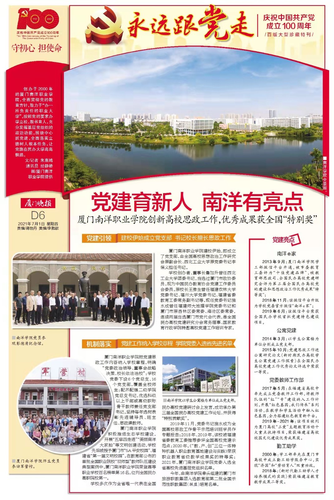 厦门晚报:将爱国意识融入青春血脉 为培养时代新人 厦门南洋学院创新形式,掀起师生学习党史热潮