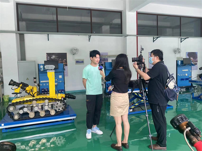 【解说】走进教研中心,王智祥自豪地向中新社记者展示,学校团队曾驾驶自主安装的特种机器人前往火场救援的照片。王智祥坦言,从没想到能在这里接触到高精尖的技术,早已走出高考失利阴霾的他还经常和学弟学妹们谈心。
