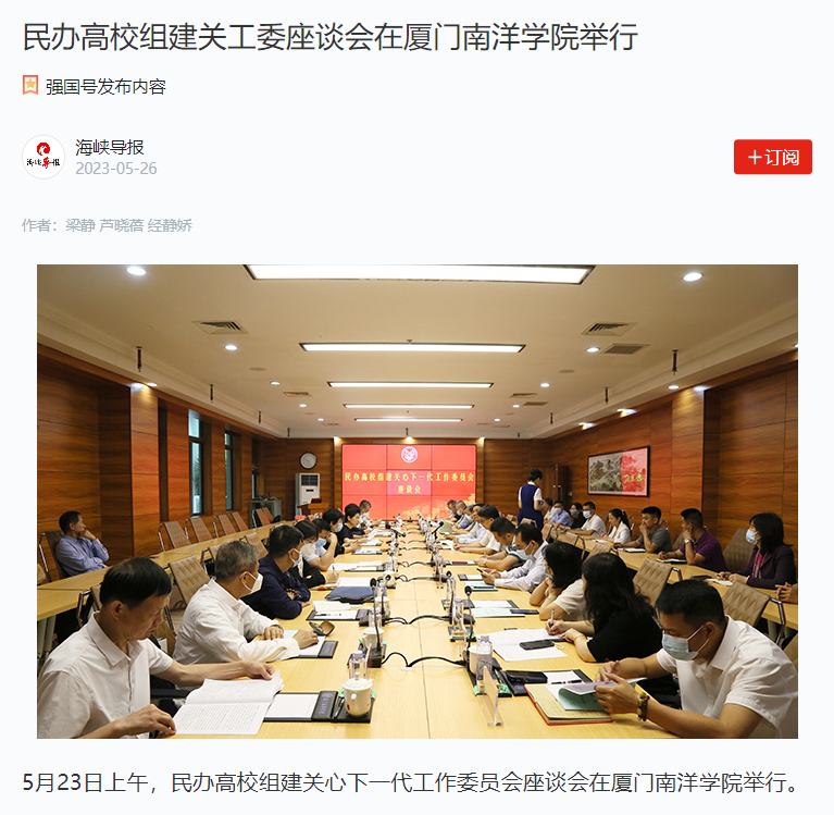 5月23日上午,民办高校组建关心下一代工作委员会座谈会在厦门南洋学院举行。