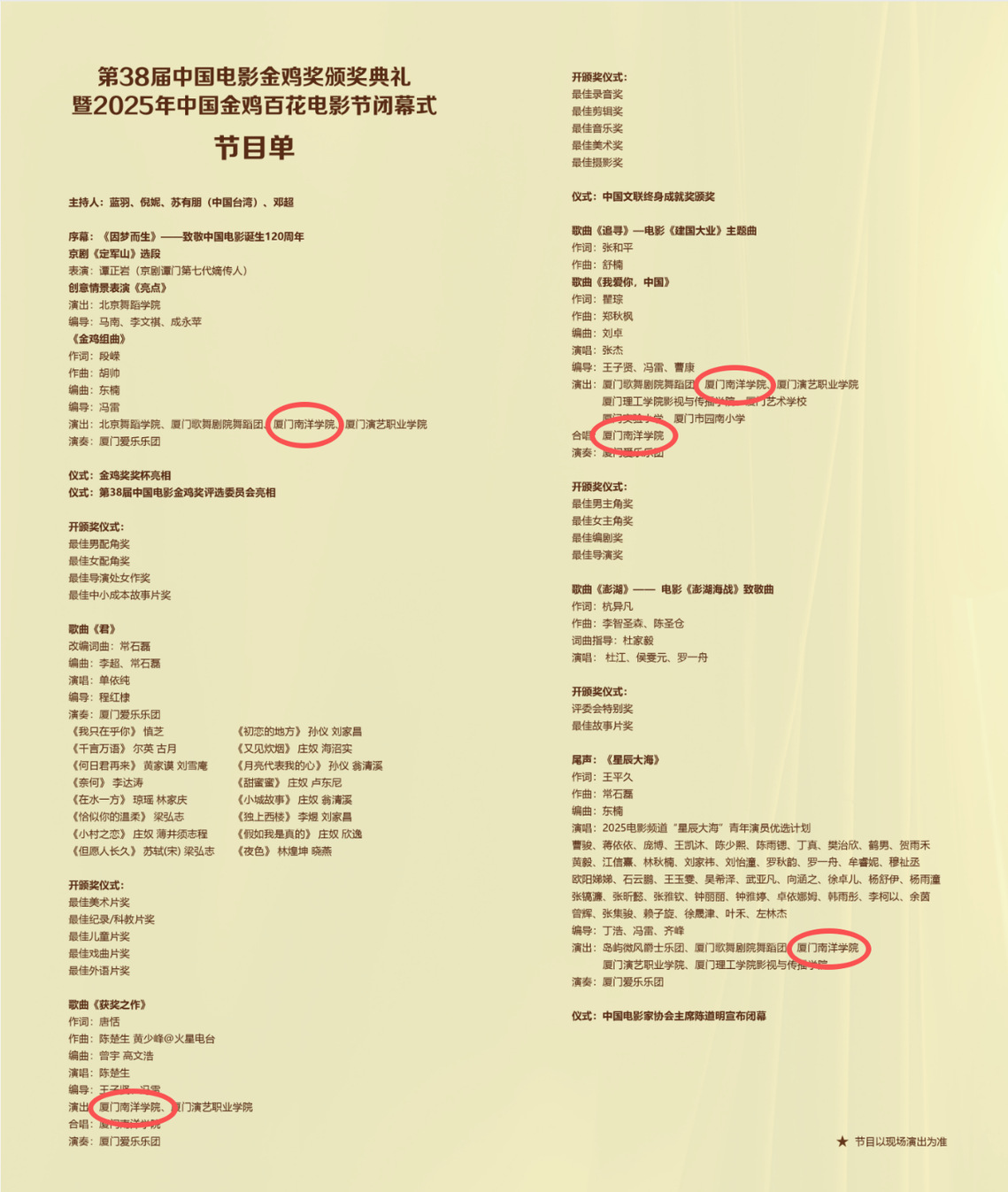 暨2025年中国金鸡百花电影节闭幕式演出