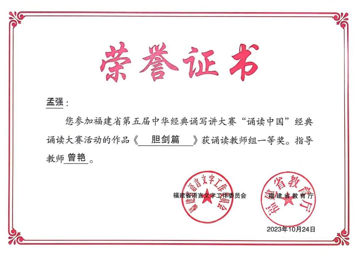 师生在各种赛事斩获佳绩,先后荣获福建省大学生戏剧节一、二等奖,福建省职业院校技能大赛声乐、器乐表演(高职组)一等奖,福建省戏剧水仙花奖三等奖,福建省经典诵读一、二、三等奖等好成绩。