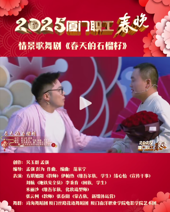 我校鼓励教师参与各类社会服务,用实际行动践行教育工作者的初心与使命。电影学院教师孟强连续多年担任金鸡晚会的编导工作,呈现了多个高质量节目;师生深度参与厦门广电举办的各类大型活动,如“书香鹭岛 ‘阅’动厦门”4.23世界读书日阅读晚会、厦门市职工春晚、厦门市总工会百人婚礼盛典的节目演出等。
