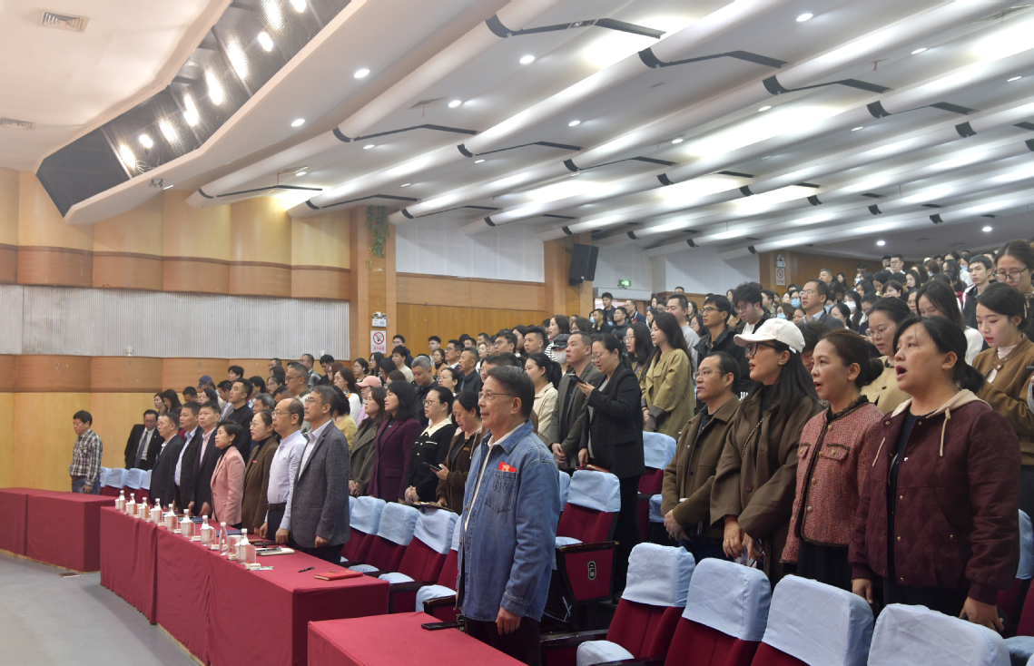 讲座开始前,全体教职工起立合唱《厦门南洋学院校歌》,激昂嘹亮的歌声响彻会场,传递出南洋人奋发向上、团结奋进的精神力量。校歌作为我校大学文化的核心载体之一,以“雄鹰展翅、航船启航”为创意意象,承载着学校“天天向上”的南洋精神和“爱与适合的教育”理念,既凝聚了学校的办学初心,也成为传承校园文化、凝聚师生共识的重要纽带,为本次专题培训拉开了庄重而温暖的序幕。