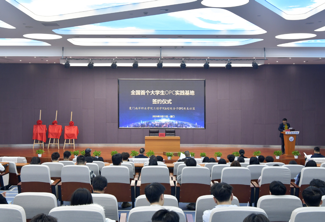 为培育智能经济新形态,厦门南洋职业学院抢先布局,与超级合子携手共建大学生OPC实践基地,正是契合AI时代大学生创新创业的核心需求,通过整合专业平台与资源,让学生的创业创意有了落地生根、成花成树的可能。