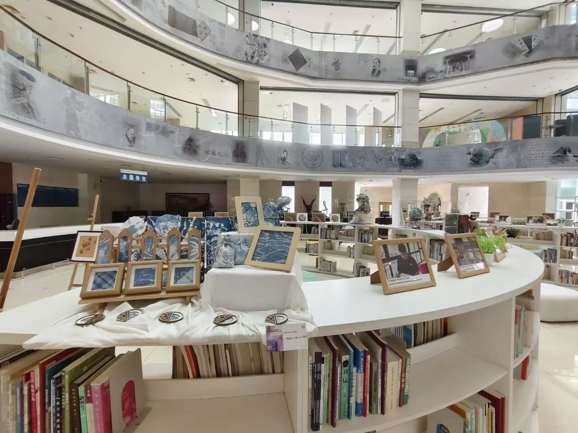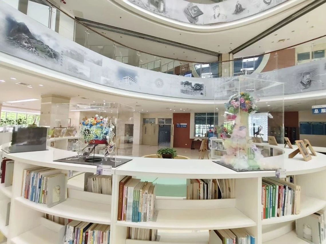 走旋转楼梯到教育学院作品展(图书馆二楼)